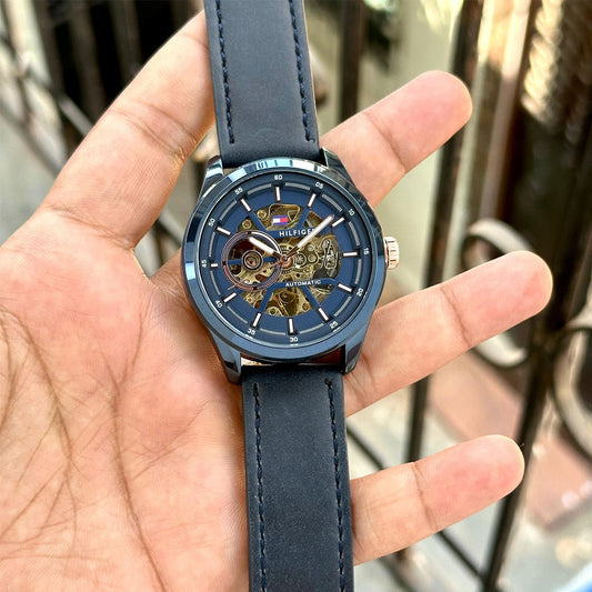 Tomm_y Hilfige_r Blue Leather Automatic Watch
